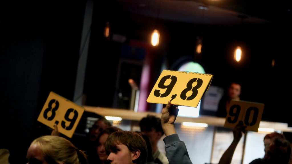 Ein Poetry Slam ist ein moderner Dichter:innenwettstreit, bei dem Poet:innen auf einer Bühne selbstgeschriebene Texte vortragen, die im Anschluss von einer zufällig ausgewählten Publikumsjury bewertet werden. Dabei dürfen sie keine Requisiten oder Verkleidungen verwenden und müssen sich an ein Zeitlimit halten.