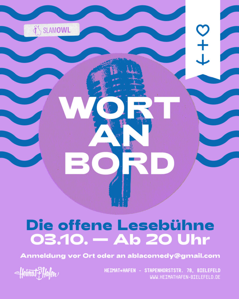 Wort an Bord ist ein offener Raum für Sprache und Austausch, mitten in Bielefeld. Ein Mikrofon, ein Spot, ein Text. Hier wird die Bühne frei für eure Geschichten, Gedichte, Gedanken.
