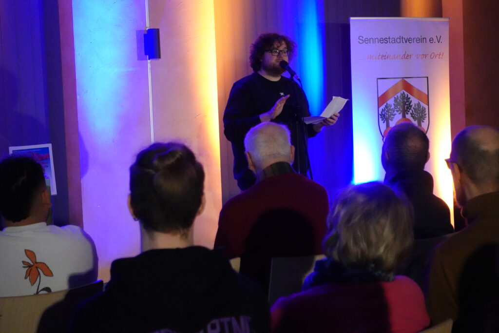 Den Sennestadtslam gibt es seit November 2012. Damals noch moderiert von Sven Stickling waren die ersten paar Ausgaben im Sennstadt-Pavillon. Danach ging es rüber ins Luna und nun ist seit vielen Jahren das Sennestadthaus der Veranstaltungsort in dem der Slam einmal pro Jahr stattfindet. Veranstalter sind seit Beginn schon der Sennestadtverein und das Bezirksamt Sennestadt, mit denen wir dort zusammen arbeiten. Jedes Jahr gibt es ein paar freie Startplätze für lokale Newcommer*innen aus Sennestadt, die sich immer direkt beim Bezirksamt Sennestadt melden können.
