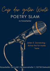 Der „Cup der guten Worte“ im Kaiserkeller Detmold findet einmal im Monat an einem Donnerstag statt, in der Zeit von September bis Mai. Wunderbare Poet*innen treten an, bei einem der ältesten Slams der Region.