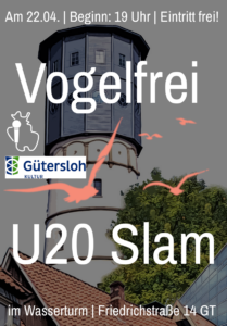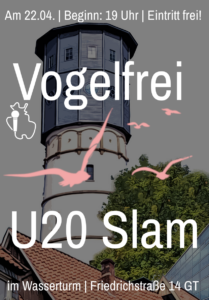 Der Vogelfrei U20 Slam wird am 22.04. zum zweiten Mal im Wasserturm stattfinden.