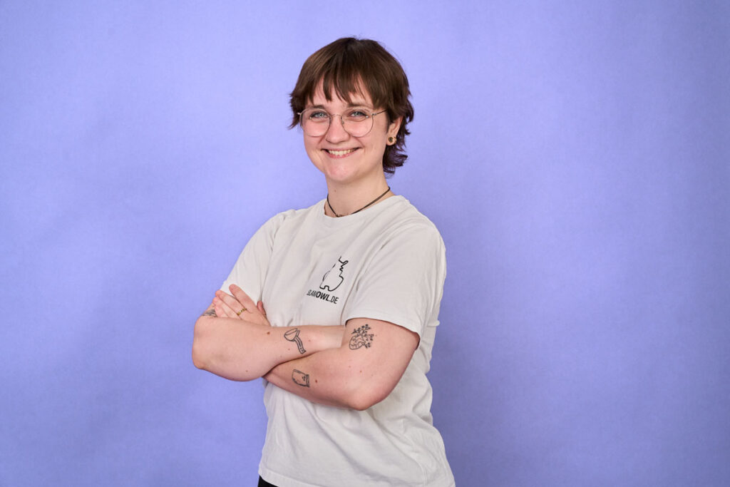 Ein besonderes Anliegen ist Sami die Awareness-Arbeit bei den Veranstaltungen. Vor Ort steht sie als Ansprechperson zur Verfügung – für alle, die sich unwohl fühlen, grenzüberschreitendes Verhalten beobachten oder einfach ein Gespräch suchen. Dabei liegt ihr besonders am Herzen, dass sich sowohl Auftretende als auch das Publikum bei Slam OWL sicher und wohl fühlen.